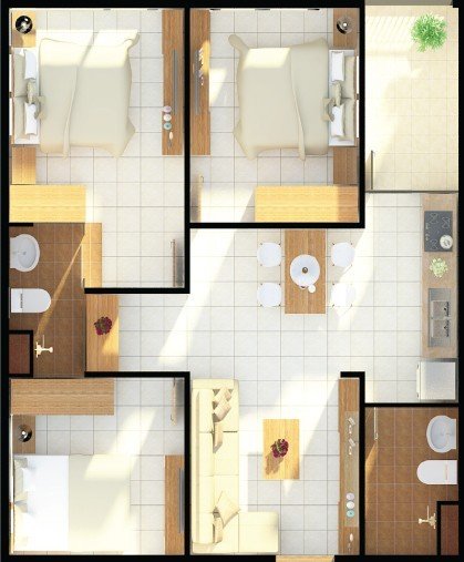 CĂN HỘ 3 PHÒNG NGỦ 67,4 M²