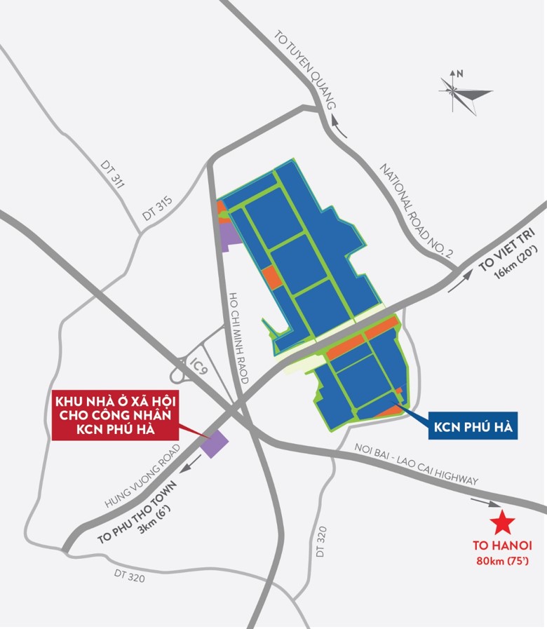 Dự án nằm cách KCN Phú Hà 1 km, nằm trên trục mặt đường Hùng Vương 35m nối thị xã Phú Thọ với QL.2, cách QL.2 khoảng 4km.